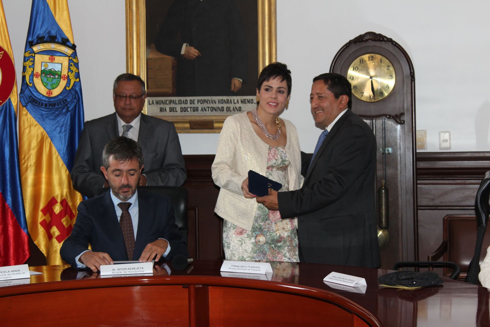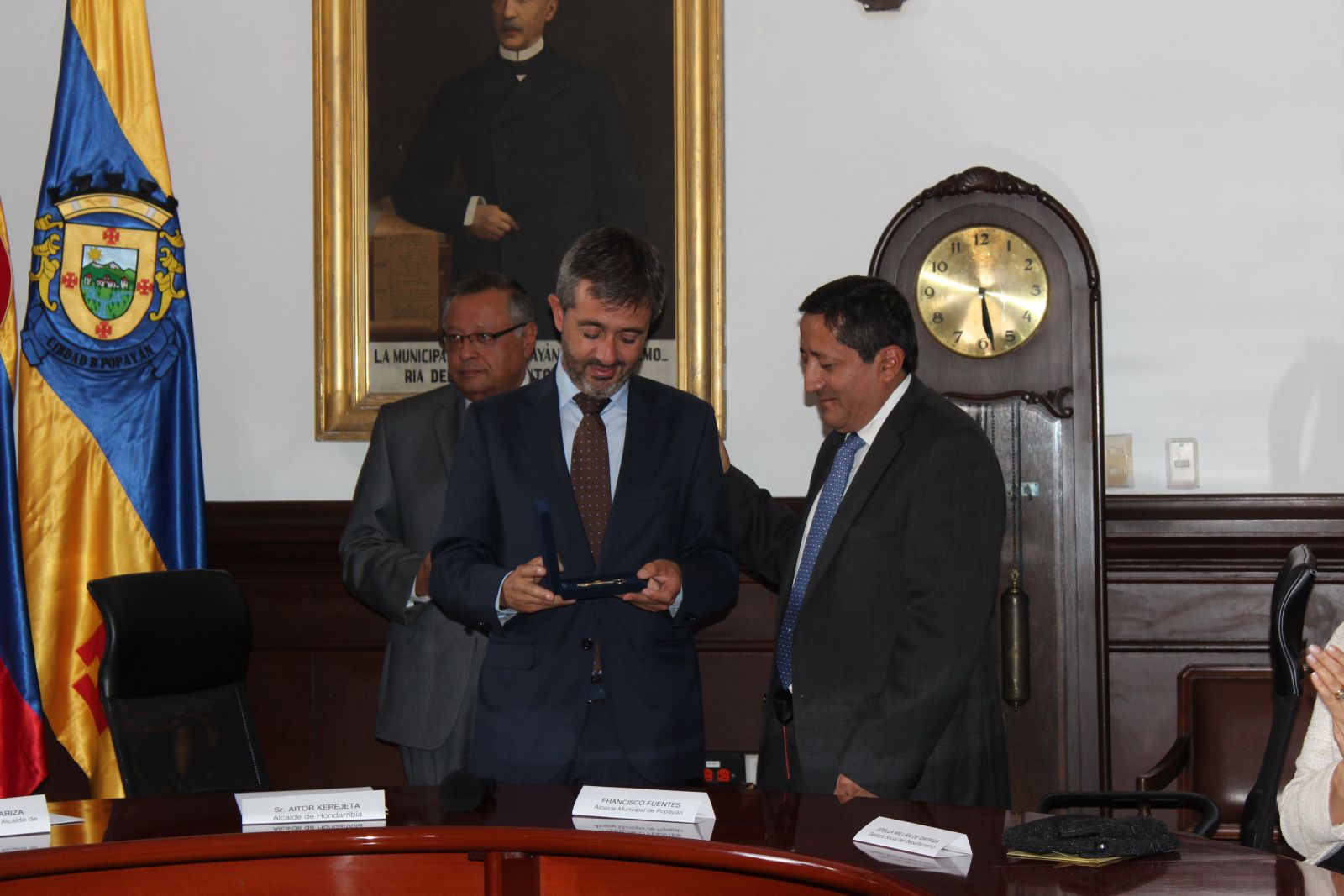 El Alcalde Francisco Fuentes Meneses, entregó esta tarde las llaves de la ciudad y declaro huéspedes ilustres al Alcalde de Hondarribia, Aitor Kerejeta y la Secretaria Privada de Cartagena, Marcela Ariza, quien representa al Alcalde titular, Dionisio Fernando Vélez Trujillo, que se encuentra en Alemania.